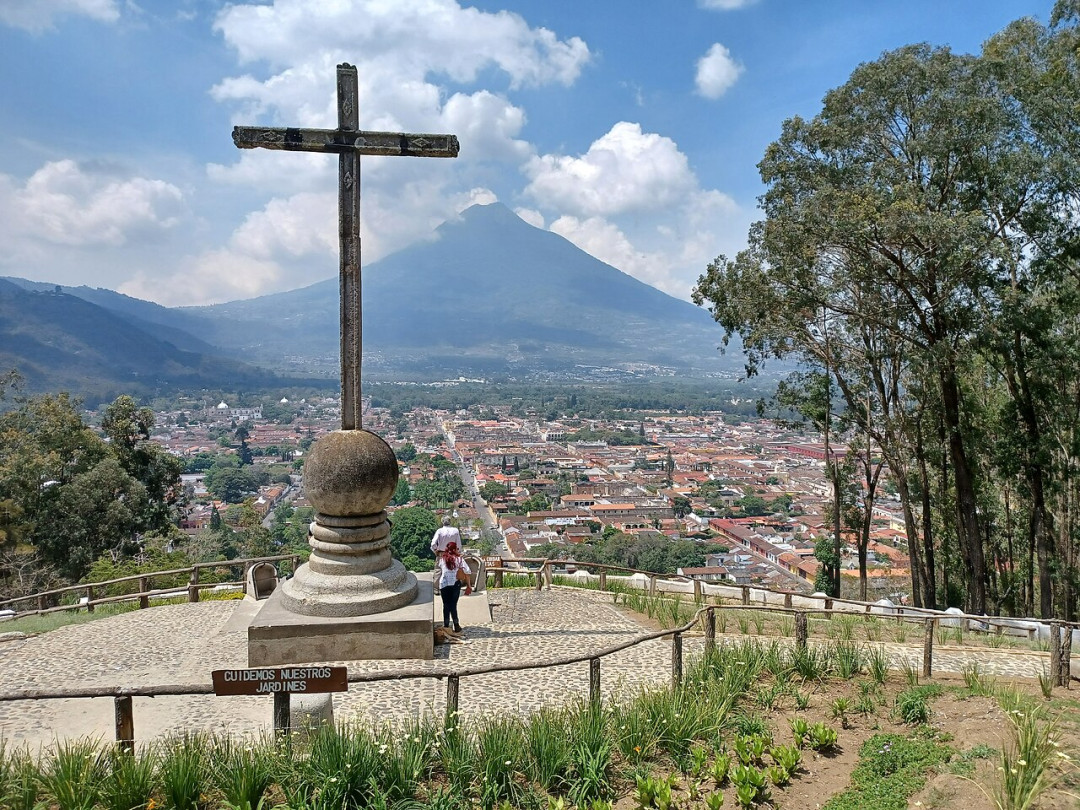 Cerro de La Cruz — холм со смотровой площадкой, откуда можно увидеть панораму лежащего внизу Антигуа и величественные вулканы — Агуа, Фуэго и Акатенанго, которые возвышаются на противоположной стороне города. Вершину холма венчает большой каменный крест, установленный в 1930 году. Подняться на холм можно на автомобиле или пешком по лестнице. На площадке стоят скамейки, работает кафе, сувенирный магазин и киоск, где можно купить еду и устроить пикник в видом на вулканы.