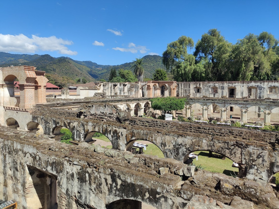 Монастырь Санта-Клара был основан в конце XVII века и дал приют всего нескольким монахиням. Тогда это была маленькая церковь и несколько домиков. Большой монастырь, руины которого мы видим сегодня, был построен в 1705 году. В 1717-м его частично повредило первое землетрясение, а второе в 1773 году довершило начатое — обитель была разрушена до основания. Позднее были попытки восстановить здания, но очередное стихийное бедствие вновь не оставило от монастыря камня на камне.