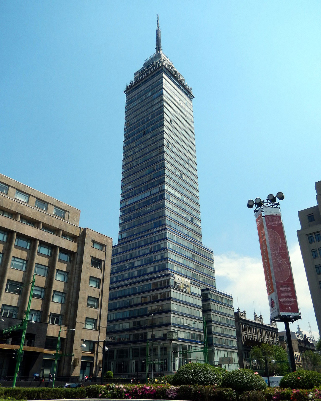 Torre Latinoamericana, или Латиноамериканская башня, — 44-этажный небоскрёб высотой 182 метра (с учётом антенны), расположенный в историческом центре недалеко от Дворца изящных искусств. Построенная в 1956 году по проекту архитектора Аугусто Альвареса Гарсии Torre Latinoamericana стала первым в мире небоскрёбом, успешно возведённым в сейсмоопасной зоне и способным выдержать 9-балльное землетрясение. Использование уникальных на тот момент технологий позволило зданию успешно пережить три сильных землетрясения без серьёзных повреждений. Это также первая в мире высотка, каркас которой покрыли стеклом и алюминием. Главным источником вдохновения для команды архитекторов стал Эмпайр-Стейт-Билдинг в Нью-Йорке.