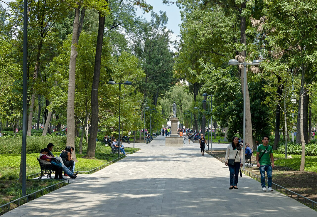 Alameda Central — старейший общественный парк на американском континенте, основанный в 1592 году вице-королем Луисом де Веласко II на месте бывшего ацтекского рынка. Название происходит от испанского слова «alamo», что означает «тополь». Парк расположен в центре Мехико и примыкает к площади Солидарности, на которой находится музей муралов Диего Риверы. С противоположной стороны Alameda Central располагается Дворец изящных искусств.