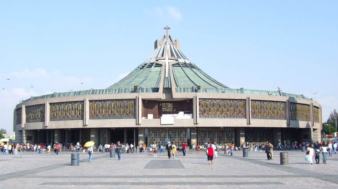Собор Святой Девы Марии Гваделупской — действующая малая базилика архиепархии Мехико. Католическая святыня находится у подножия холма Тепейяк на месте разрушенного храма ацтекских язычников. Это популярное место паломничества, которое ежегодно посещают около 20 миллионов католиков со всего мира. Первая барочная базилика на этом месте была возведена в начале XVIII века. В 1970-х годах рядом с ней построили новый модернистский собор, вмещающий 20 000 верующих. Новую базилику отличает необычный архитектурный облик — над круглым зданием возвышается оригинальный голубой купол, символизирующий накидку Девы Марии. Внутри хранится нерукотворный образ Богородицы, появившийся загадочным образом на плаще юного мексиканского крестьянина в XVI веке.