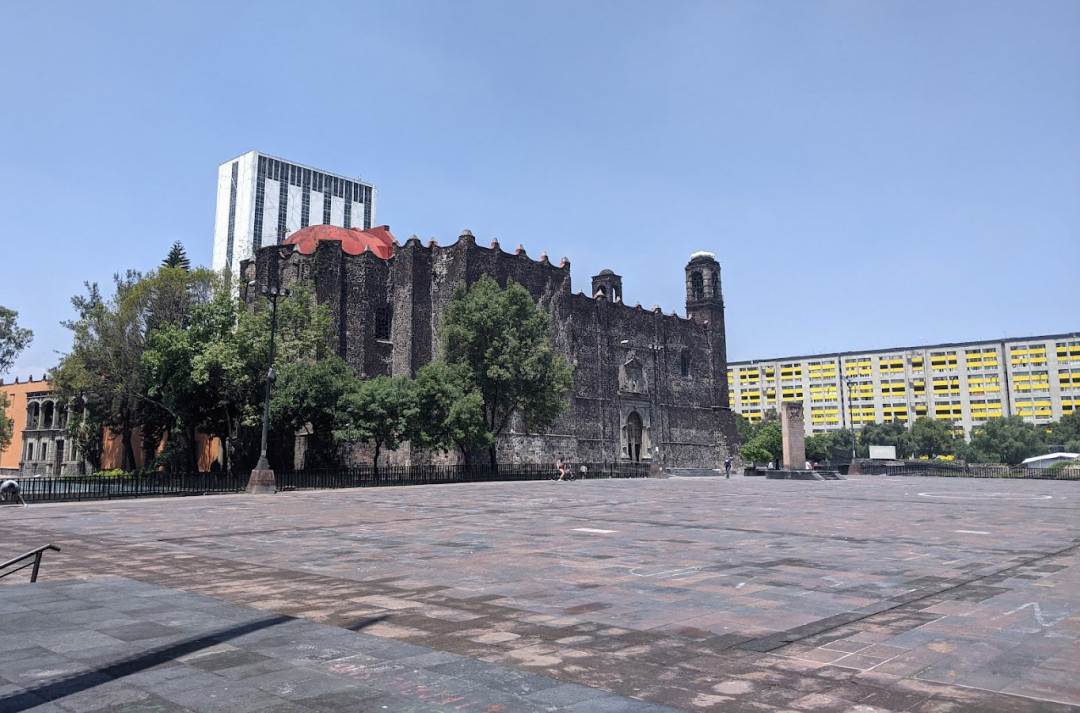 Городская площадь Трёх культур расположена в районе Тлателолько и символизирует слияние доколумбовой, колониальной и современной эпох в истории Мексики. Здесь находятся руины ацтекского города Тлателолько, колониальная церковь Сантьяго XVI века, современное здание Министерства иностранных дел. В пятнадцати минутах ходьбы от площади проходит крупнейшая туристическая и автомобильная артерия Мехико — проспект Пасео-де-ла-Реформа.